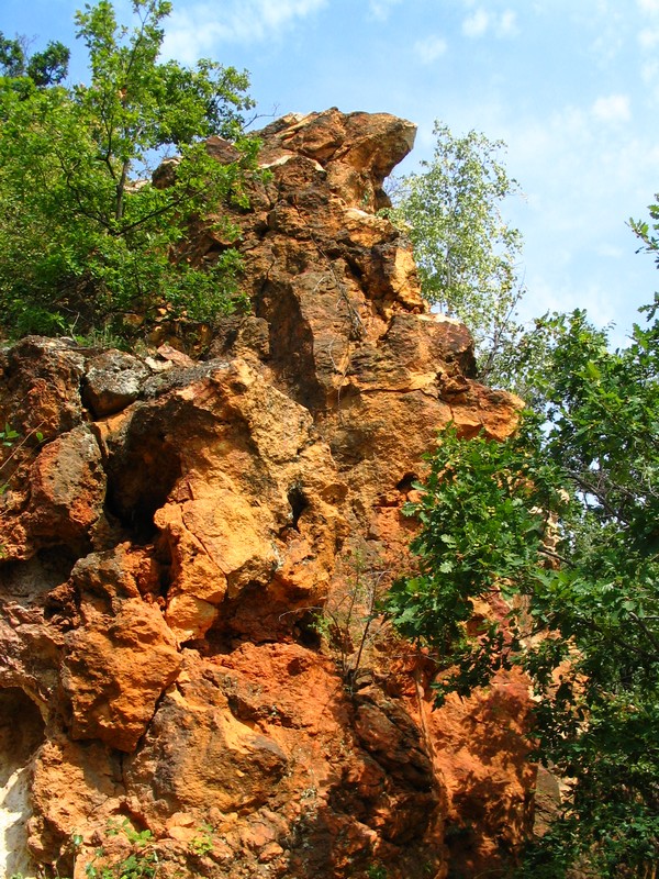 Elhagyott bánya létére ez egy nagyon hangulatos hely, már csak arra vár, hogy pihenőhelyeket és egy tanösvényt alakítsanak ki. Lenne is itt mit bemutatni, hisz amellett, hogy ez az ország ásványfajokban leggazdagabb területe, itt van a Rudapithecus lelőhelye is. A bányát felépítő rétegek közül kettő érdemel kiemelt figyelmet. A hegység fő tömegét alkotó alsó-triász dolomitot tisztázatlan eredetű hidrotermális hatások érték, ekkor alakult ki metaszomatózissal a vasérctelep ( metaszomatózis: elemkicserélődés) - a dolomit Ca és Mg ionjai helyére vas épült be, így sziderit jött létre, amely a felszínközelben oxidálódva limonittá alakult - ezt fejtette a külszíni bányászat. További ásványok köszönhetőek a vasércet ért későbbi hidrotermális hatásoknak, ezek közül a legfontosabb a réz, a középkorban ezt bányászták. Rudabánya híres az itt talált különösen szép termésrézkristályokról, melyek példányait több múzeumban is megtalálhatjuk. Termésrezet ma már csak elvétve lehet találni, de más rézásványokkal, malachittal és azurittal gyakran lehet találkozni. De erről, a valamikori városról és a bányászat történetéről nagyon jó leírás olvasható Rudabánya honlapján , mindenkinek ajánlom, hogy olvassa el.